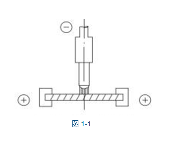 極性是指工件到焊接電源的連接方式,原則上,在螺柱焊接時(shí)焊接電源的正極接工件焊接時(shí)排斥電弧,而焊接電源的負(fù)極接焊槍吸引電弧。如下圖1-1所示